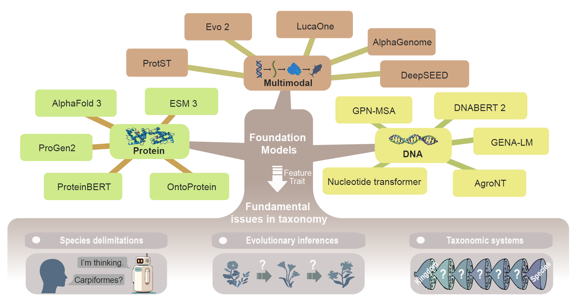 文章系统梳理了深度学习在物种图像识别、生物声学监测、DNA/eDNA序列分类及性状机制解析中的最新进展,并指出随着基础模型将基因组视作“语言”进行大规模建模,从核酸序列到表型特征的跨层级推断能力正在成形,“AI-分类学家”有望成为未来生物学研究的新型基础设施。文章在结论中强调,AI不会替代分类学家,而是在重塑其方法论与工作流;分类学家在性状解读、进化脉络判断与模型校准等环节仍具有不可替代的优势,应主动参与并引领AI与生物分类学融合的下一阶段。